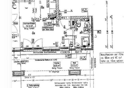 Die Wohnung besteht aus 2 geräumigen Zimmern (Wohnzimmer, Schlafzimmer) mit extra hohen Wänden und hohen Türen. In der gesamten Wohnung ist Fußbodenheizung, der Bodenbelag besteht aus hochwertigem Eichenparkett, bzw. Feinsteinfliesen im Badezimmer. Alle Fenster sind bodentief mit elektrischen Rolläden.