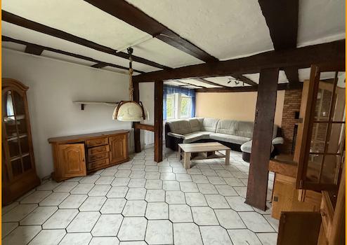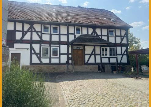Hier können Sie kurzfristig einziehen! Das Fachwerkhaus wurde ursprünglich im Jahr 1751 erbaut und verfügt heute über rund 150m² Wohnfläche, auf zwei Etagen. Das Erdgeschoss gliedert sich auf in ein geräumiges Wohnzimmer mit freigelegten Balken, ein Schlafzimmer, zwei Abstellräume, einen Hauswirtschaftsraum mit direktem Zugang in die Tenne, eine Küche und ein fast neuwertiges helles Badezimmer mit Dusche und WC aus dem Jahr 2018. Das Obergeschoss verfügt über drei Schlafzimmer, einen Abstellraum und ein weiteres Badezimmer aus den 50er Jahren. Das Dachgeschoss des Hauses ist zudem ausbaufähig oder kann aktuell zum Lagern und Abstellen verwendet werden, ebenso die kleine Tenne, die im Erdgeschoss ideal für Zweiräder etc. geeignet ist. Unter dem Haus befindet sich ein Kriechkeller für Ihre Vorräte. Für Ihre PKW stehen Ihnen direkt vor dem Haus Stellplätze auf dem Hof zur Verfügung.