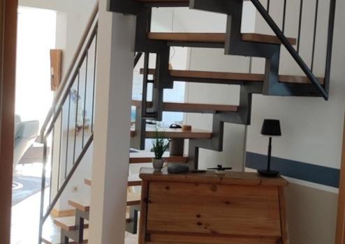 Das zentrale, großzügige Treppenhaus ist mit Granit ausgelegt und der Handlauf des Treppengeländers ist in Edelstahl ausgeführt.
