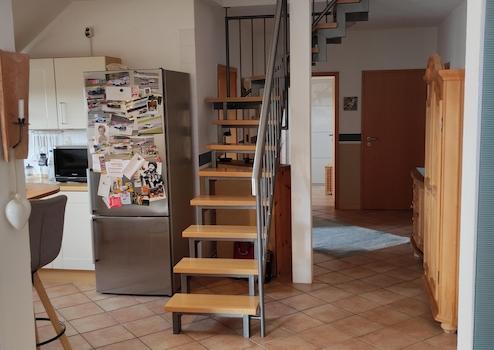 Die Wohnung ist ca. 81,00m² (Wohnfläche gem. DIN 277) groß und verfügt noch zusätzlich über einen ca. 14,00m² großen Lager- und Trockenraum (zum nicht dauernden Aufenthalt von Menschen) im Spitzboden, der sich direkt über der Wohnung befindet und nur von der Wohnung aus über eine Stahl-Wangentreppe mit Buchenstufen erschließen lässt.