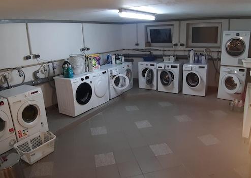 Eine Waschküche mit jeweils einem Waschmaschinen-Stellplatz und eigener Kaltwasseruhr je Wohnung sowie einem Fahrradabstellraum sind noch zusätzlich für alle Eigentümer des 9-Familienhauses vorhanden.