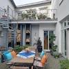 Sie befindet sich in einem Wohn- und Geschäftshaus - jedoch komplett eigenständig, mit einem separaten Eingang.