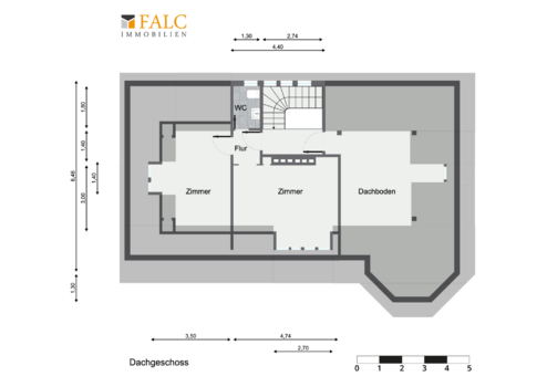 Das Dachgeschoss bietet mit ca. 56 m² eine charmante 2-Zimmer-Wohnung inklusive eigener Küche und Bad, die sich ideal für Singles, Paare oder als Home-Office-Etage eignet.