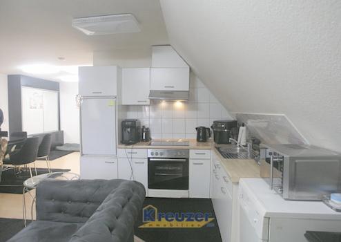 Aufgeteilt ist die Wohnung in einen offen gehaltenen Wohnbereich mit offener Küche und Essbereich, Flur und Abstellraum mit WM-Anschluss. Ein innenliegendes Bad mit Wanne, Dusche, WC, Waschbecken. Ein Schlafzimmer und zwei weitere Zimmer. Vom Wohnungsflur aus über eine Einschubtreppe kommen Sie auf Ihre riesengroße Dachterrasse mit ca. 64 m² Fläche und die grandiose Aussicht auf die Türme und Stadttor der Stadt. Ein Zwischendachboden bietet noch einen zusätzlichen Stauraum für allerlei Dinge.