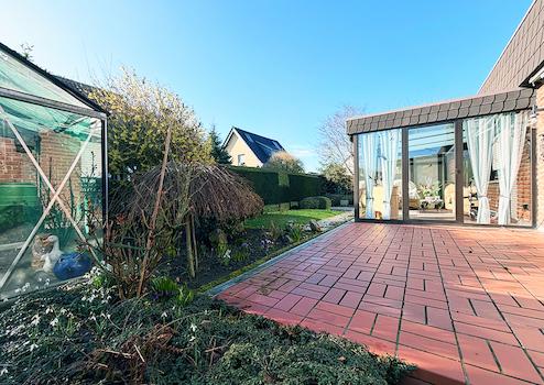 - Gemütlicher Garten mit Gewächshaus