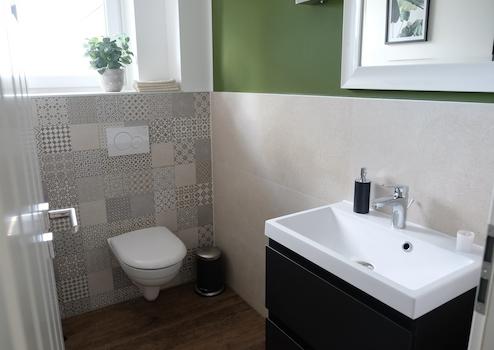 Eine 2018 neu eingebaute Gasheizung mit Brennwerttechnik und der Kaminofen sorgen für behagliche Wärme. Das neuwertige Vollbad mit Dusche und Badewanne kann auch vom integrierten Sternenhimmel beleuchtet werden. Aktuell wurde eines der beiden separaten Gäste WC's komplett erneuert.