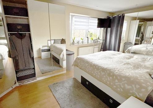Die Wohnung verfügt über ca. 190 m² Wohnfläche und teilt sich in zwei klar getrennte Einheiten, was sie besonders attraktiv für Homeoffice-Nutzer, Paare mit Platzbedarf oder Familien mit größeren Kindern macht. Zwischen den beiden Einheiten befindet sich ein Gäste-WC.