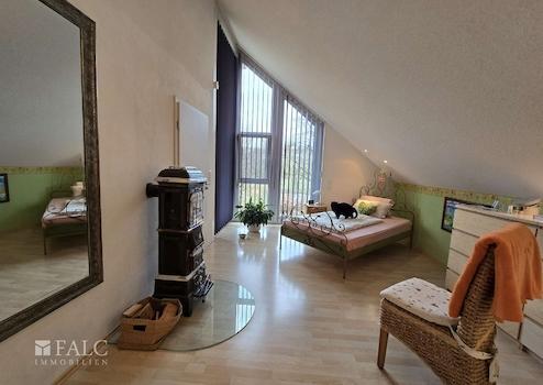 Im Dachgeschoss setzt sich das großzügige Raumkonzept fort. Neben Schlaf und Kinderzimmern bietet die Galerie zusätzliche Fläche, die sich je nach Bedarf als Leseecke, Arbeitsbereich oder Rückzugszone nutzen lässt. Das Badezimmer präsentiert sich modern und hochwertig gestaltet, mit einer klaren Linienführung und zeitgemäßer Ausstattung.