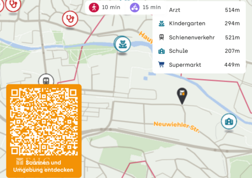 Die Lage verbindet Ruhe mit guter Erreichbarkeit. Einrichtungen des täglichen Bedarfs sowie Schule und Kindergarten sind in der Umgebung gut erreichbar. Auch die Anbindung an den öffentlichen Verkehr ist vorteilhaft, sodass Sie im Alltag flexibel bleiben.
