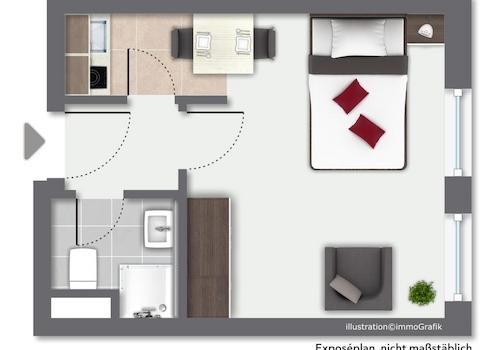 Die Wohnung ist bestens für eine Einzelperson oder für Paare geeignet!