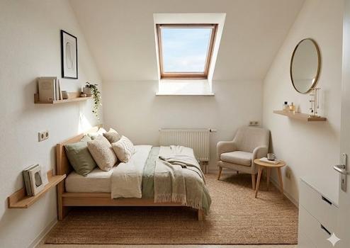 Die hellen Wohn- u. Schlafzimmer lassen sich individuell gestalten – ob gemütliche Wohninsel oder stylisches Homeoffice: Hier ist Platz für Ihre Ideen.