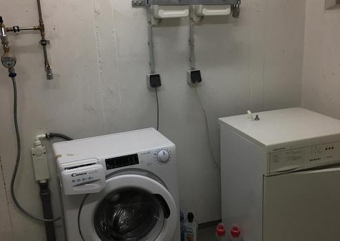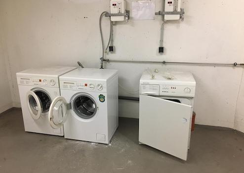Im Untergeschoss befindet sich ein großzügiger Gemeinschaftsbereich mit Waschmaschinen, Trocknern und viel Platz zum Wäschetrocknen.