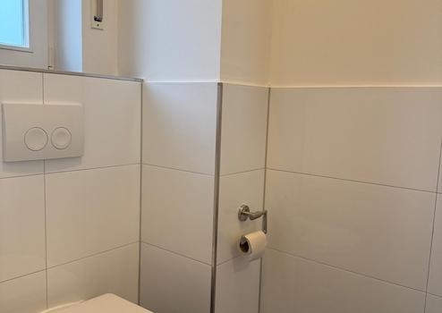 Das Gäste-WC im Erdgeschoss und das Badezimmer im Obergeschoss sind hell gefliest.