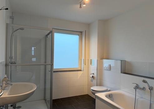 Im ersten Obergeschoss befindet sich das helle Badezimmer, welches mit einer Badewanne und einer Dusche ausgestattet ist.