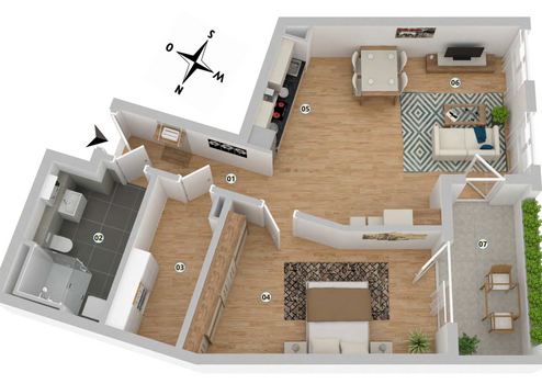 Ein besonderes Highlight ist die großzügige Süd-West-Loggia mit Abendsonne, auf der Sie entspannte Stunden im Freien genießen können.