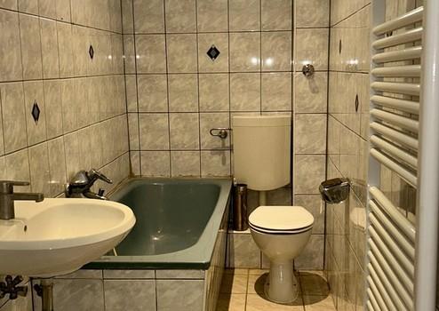 Das Tageslichtbad ist gefliest und mit einer Badewanne ausgestattet. Eine integrierte Fußbodenheizung sorgt hier für angenehme Wärme – besonders in der kalten Jahreszeit ein spürbarer Komfort.