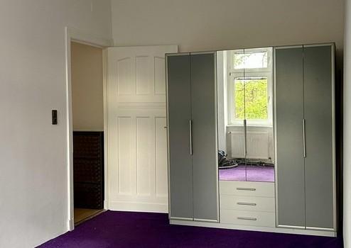 Im Wohnzimmer wurde ein Laminatboden in warmer Holzoptik verlegt, der für eine wohnliche Atmosphäre sorgt. Das Schlafzimmer ist aktuell mit einem Teppich ausgestattet, der sich bei Bedarf problemlos und individuell austauschen lässt – ideal, um den Raum nach eigenem Geschmack zu gestalten.