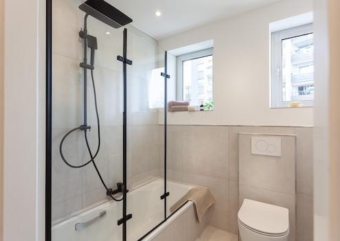 - Modernes Badezimmer mit Badewanne und Regendusche