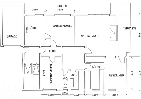- Parken inklusive: Zu der Wohnung gehört eine eigene Garage direkt am Haus.