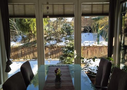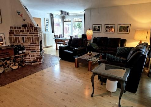 Im Erdgeschoss finden Sie 2 Schlafzimmer, Vollbad, Gäste-WC, Wohn/Esszimmer, Küche, Wirtschaftsraum, im Obergeschoss 2 weitere Schlafzimmer, Wohnzimmer, Küche, Vollbad. Die Wohnung oben kann separat vermietet werden und würde ca 700 Eu kalt erwirtschaften. Wir betreiben zur Zeit eine wöchentliche Vermietung an Monteure, die deutlich mehr Rendite erreicht und innerhalb kürzester Zeit beendet werden kann. Im grossen Wohnzimmer im Erdgeschoss befindet sich ein toller festverbauter Kamin, mit versenkbarer Frontscheibe. Der Kamin darf betrieben werden. Vom Esstisch aus hat man einen schönen Blick in den Naturgarten, der mit zahlreichen Obstbäumen bestückt ist. Dort steht ein Foliengewächshaus und ein Holz/Geräteschuppen, ausserdem ein kleines Kinderhaus mit süsser Holzterasse. Die eigendliche Terasse ist gefliesst und ca 70qm gross, teilweise überdacht, gestattet schöne Grillabende und ist von aussen nicht einsehbar. Aus der Doppelgarage mit elektrischen Rolltoren können Sie trockenen Fusses ins Haus gelangen. Die Gasheizung ist vom Dez.2022 und könnte mit bis zu 22% Wasserstoff oder zusätzlicher Wärmepumpe betrieben werden. Der Dachboden ist ausgebaut und an die Zentralheizung angeschlossen. Internet: Glasfaser