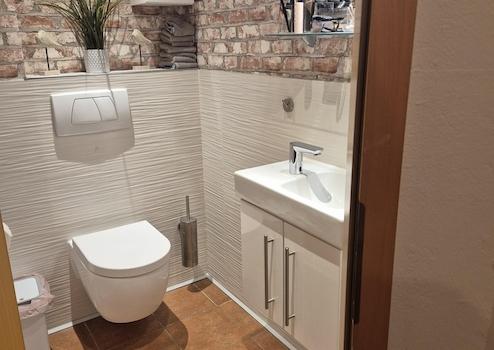 Das große Bad im Erdgeschoss hat zusätzlich ein Bidet.