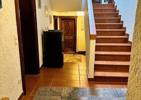 Cottoböden verbreiten einen mediterranen Flair, Eichenparkett und dekorative Holztüren verleihen dem Haus einen warmen Charakter – ein gelungener Mix aus „Rustico & Moderne“.