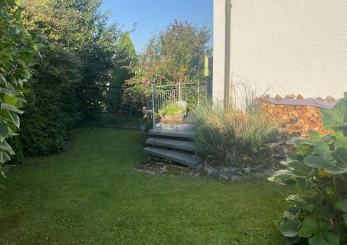 Weiter geht es zu den unteren Schlafräumen, links zwei Räume verbunden durch einen Rundbogen und rechts ein Schlafraum mit kleinem Nebenzimmer. Hier gibt es eine Terrassentüre zum hinteren Garten und dem zweiten Hauseingang. Ideal als getrennter Arbeitsbereich oder auch für die Aufteilung von (Groß)- Eltern- /Kind-Bereich.