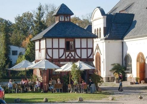 Das Ensemble aus 12 Gebäuden liegt mit angrenzendem Schloß, 8 ha. Park, Gutshof & Gutsdorf als Insel inmitten von Feldern.