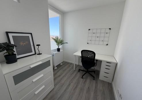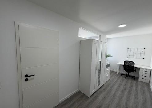 Schlafbereich: Bett, Kleiderschrank, Schreibtisch, Schreibtischstuhl