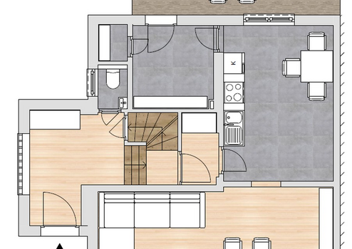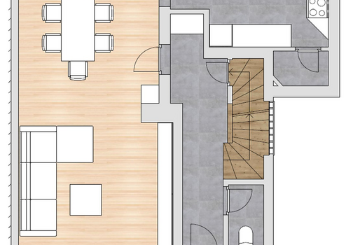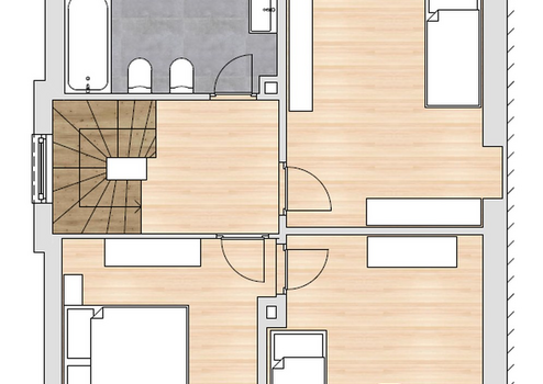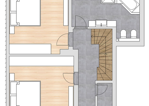 Durch die Verbindung beider Häuser im Obergeschoss ergibt sich ein großzügiges Wohnkonzept mit flexiblen Nutzungsmöglichkeiten.