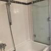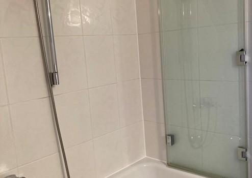 Bad mit extra großer Badewanne und niedrigem Einstieg , Designer Waschbecken, Mass angefertigte Duschwand, Fenster, Waschmaschinen Anschluss.