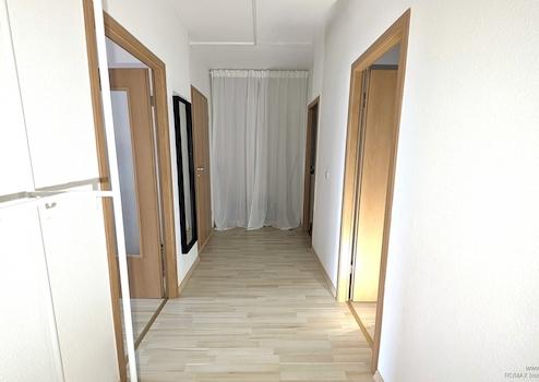 Beim Betreten der Wohnung gelangen Sie in einen einladenden Flur, von dem aus alle Räume bequem erreichbar sind. Herzstück der Wohnung ist das helle und großzügige Wohnzimmer, das mit einem komfortablen Ecksofa sowie einem integrierten Essbereich ausgestattet ist. Von hier aus haben Sie direkten Zugang zum großen Balkon, der zusätzlichen Wohnkomfort bietet und zu entspannten Stunden im Freien einlädt.