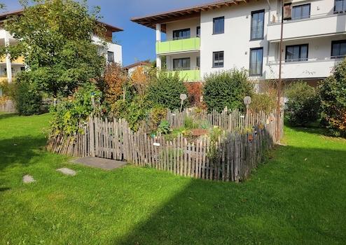 Zum Gesamtareal, an welchem ein Miteigentum besteht, gehören neben den Grünflächen auch zwei großzügige Kinderspielplätze, ein zentraler Platz für gemeinschaftliche Veranstaltungen und auch mehrere Parzellen für das Anpflanzen kleinen Gemüsegärten.