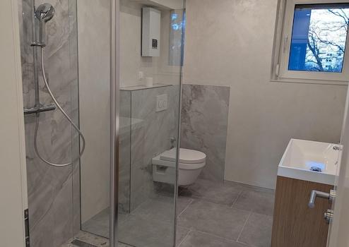 Badezimmer: Modernisiert und zeitgemäß ausgestattet.