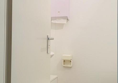 WC-Box mit Handwaschbecken und WC (Entfernung der Trockenbaukonstruktion für den Umbau zu einem kompletten Bad ist mit geringem Aufwand möglich)