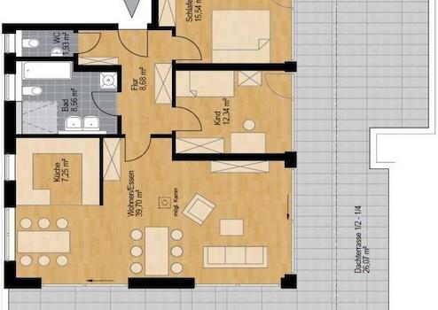 Diese sehr schöne möblierte 3- Zimmer Penthouse Wohnung in Kolbermoor mit ca. 120 qm, eignet sich für Mieter die ruhig und doch zentral wohnen möchten.