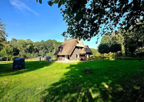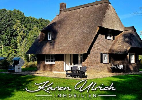 Das charmante Reetdach unterstreicht den besonderen Charakter des Hauses und verleiht ihm eine zeitlose, norddeutsche Eleganz, die sich harmonisch in die natürliche Umgebung einfügt