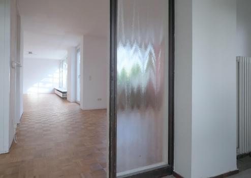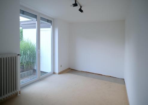 Entlang des Flurs liegen rechts zwei gut geschnittene Zimmer. Beide profitieren von den hellen Fensterfronten zum ruhigen Außenbereich. Links, zum Atriumgarten, ein etwas kleineres Zimmer und ein großes, das sich ideal als Kinderzimmer, Gästezimmer oder ruhiges Home-Office eignet. Dieses Zimmer hat eine Tür, die in den Garten führt.
