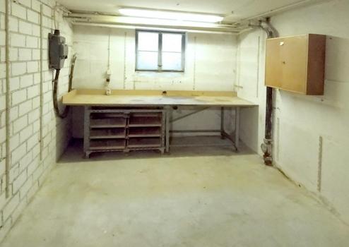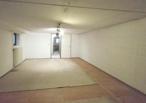 Über die Treppe im Esszimmer gelangt man in den Keller. Hier befindet sich ein großzügiger Hobbyraum, der Hauswirtschaftsraum mit Gasheizung und ein weiterer Raum, der als Werkstatt genutzt werden kann. Das Treppenhaus bietet sich als weiterer Stauraum an.