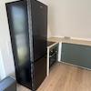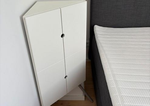 Bett, Kommode, Schrank vorhanden.