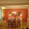 * großzügiger Wohn- / Essbereich mit elegantem Kaminofen, bei Bedarf teilbar durch eine Schiebetür-Kombination aus Weißglas,