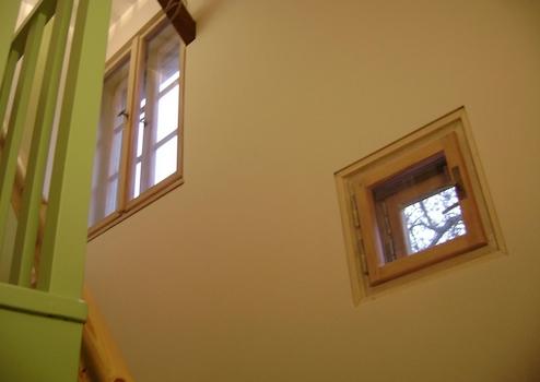 * originale Massivholztüren und restaurierte Doppelkastenfenster,
