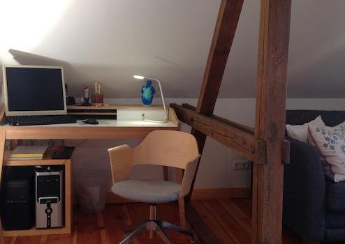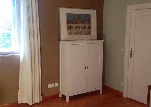* großzügiges Balkonzimmer bei Bedarf teilbar mit Bad en Suite, Kleiderschranknische und historischem Kachelofen,