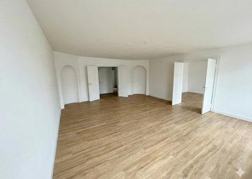Großzügiges Wohnzimmer (41 m²): Das Herzstück der Wohnung beeindruckt durch eine weite Fensterfront, charmante Kaminnischen und klassische Flügeltüren. Ein Raum, der Geschichte atmet und gleichzeitig viel Platz für individuelle Entfaltung bietet.