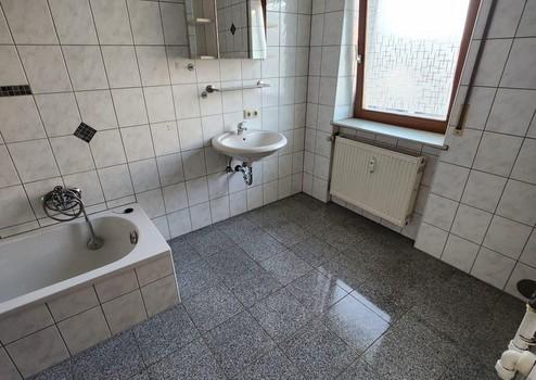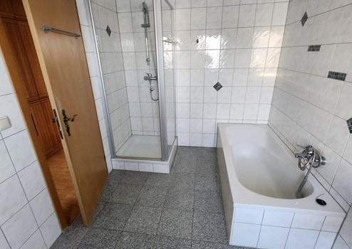 Schönes Bad mit Badewanne, Dusche und Waschmaschinenanschluß.