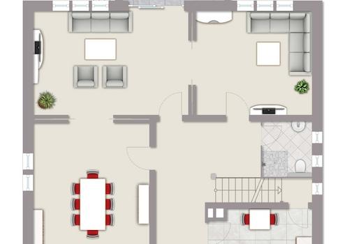 Gleichzeitig bietet das Haus viel Raum für Ihre Ideen: Gestalten Sie hier Ihr persönliches Wohnkonzept – ob ein großzügiges Homeoffice, eine private Bibliothek oder ein Rückzugsort mit Spa-Charakter.