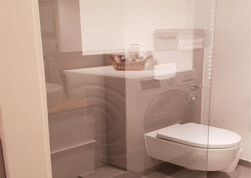 - Küche mit Markenküchengeräten: Kühlschrank, Ceranfeld, Backofen (Siemens), Mikrowelle, Geschirrspüler. Wasserkocher (WMF), Toaster (WMF) und Kaffeemaschine (Nespresso)