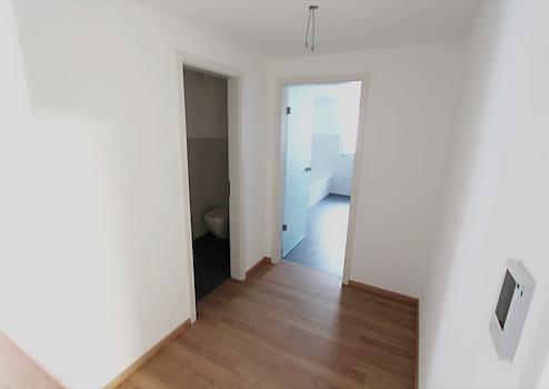 Begehen wir die Wohnung aber zunächst gedanklich. Nach Betreten der Wohnung befinden Sie sich in der Eingangsdiele mit Platz für eine Garderobe. Das Tageslicht-Badezimmer rechter Hand ist mit einer Badewanne, Dusche, WC und zwei Waschbecken in der Sanitärausstattung geplant. Eine separate Toilette mit Waschbecken und WC schließt sich daran an. Den Flur weiter gehend nutzen Sie einen kleinen Abstellraum. Egal ob Sie hier Lebensmittel bevorraten möchten oder Staubsauger & Co. den entsprechenden Platz zuweisen. Über einen weiteren kleinen Flur haben Sie Zutritt in die drei Schlafräume. Das Zimmer geradeaus nutzen Sie idealerweise als Kinderzimmer oder aber auch als Büro; ganz nach Ihren Bedürfnissen. Daran schließt sich das Eltern-Schlafzimmer an. Diese bietet Platz für Ihre Doppelbettanlage sowie weiterer Möblierung. Ein weiteres helles und freundliches (Kinder-) Zimmer schließt sich daran an. Im Anschluss betreten Sie den offen und hellen Tagesbereich. Diesen Raum können Sie in Küche-Essen-Wohnen, ganz nach Ihren Vorstellungen, gliedern. Einen Austritt auf Ihre eigenen, nach Süden ausgerichteten, Balkon ist aus dem Tagesbereich heraus möglich. Ein offener und moderner Grundriss mit diversen Fensterflächen ermöglicht einer Familie oder aber einem Paar genügend Freiraum.