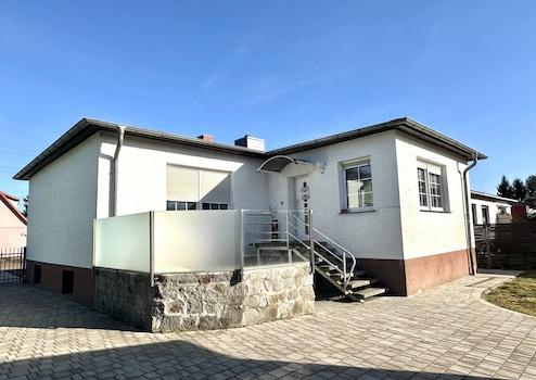 Liebevoll renoviertes Einfamilienhaus mit Einliegerwohnung in Gartz. Im Erdgeschoss des Hauses befinden sich ein großzügiges und lichtdurchflutetes Wohnzimmer mit Ausgang auf den Balkon, mit einer offenen voll ...