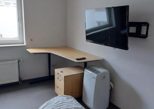 Die Wohnung ist vollständig inkl Geschirr, Kochgeschirr und Besteck eingerichtet. Das Bett hat eine Breite von 160 cm. Eine Matratze wird noch nach den Bedürfnissen des Mieters angeschafft. Sie können sofort einziehen. Sie benötigen nur noch Handtücher, Geschirrtücher und Bettwäsche. Waschmaschine, Spülmaschine und Wäschetrockner sind in der Wohnung vorhanden. Für den Sommer gibt es eine mobile Klimananlage.
